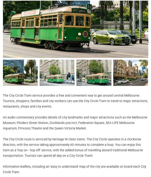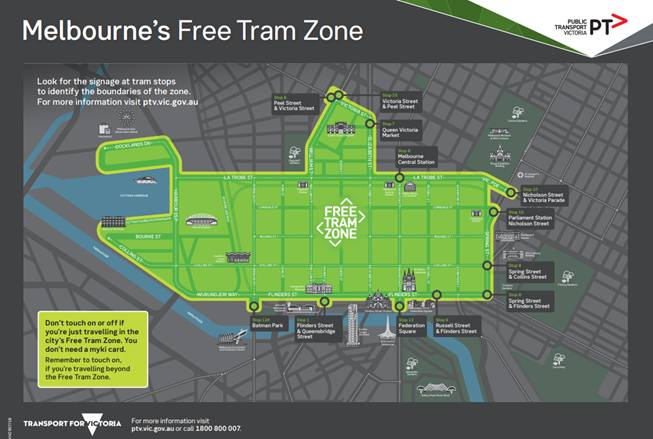 Look for the distinctive yellow trams that run the route. Several tram stops are on Collins Street.